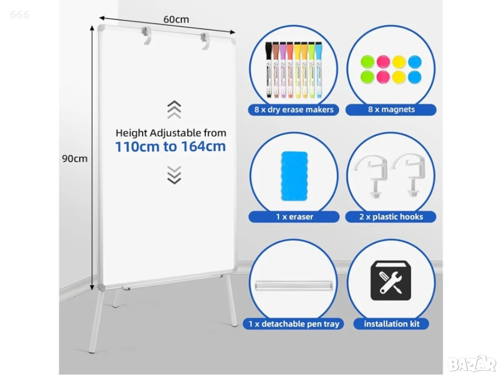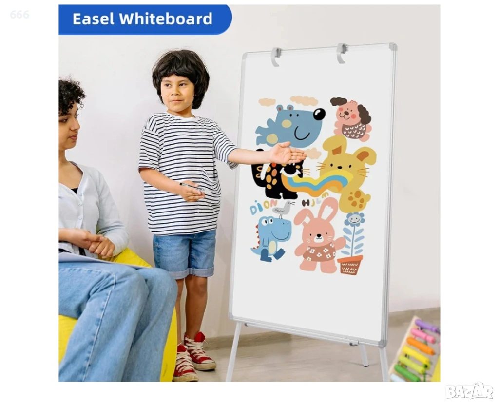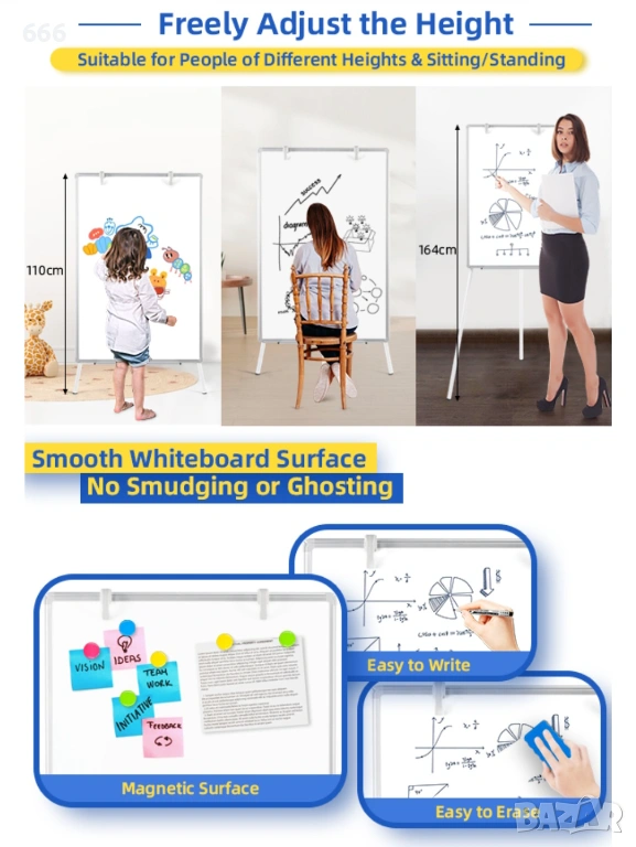 ЛЕСНО ЗА ПИСАНЕ И ИЗТРИВАНЕ: Можете да пишете и изтривате плавно върху тази стояща бяла дъска с приложените 8 цветни маркера и гумичка и дори след много дни, написаното от вас ще бъде изчистено, без да оставя следи. Включена е подвижна тава за организиране на вашите пишещи принадлежности.