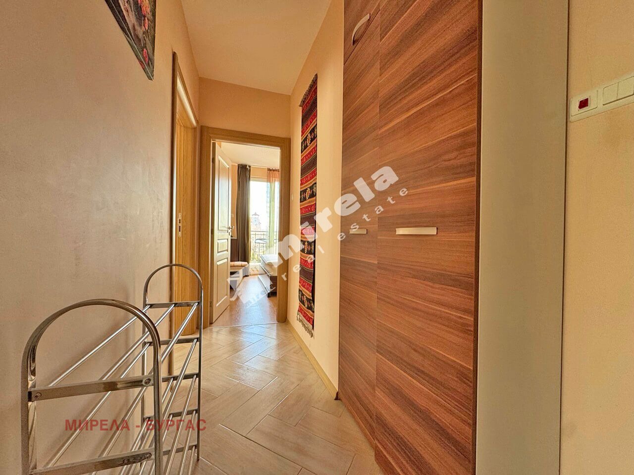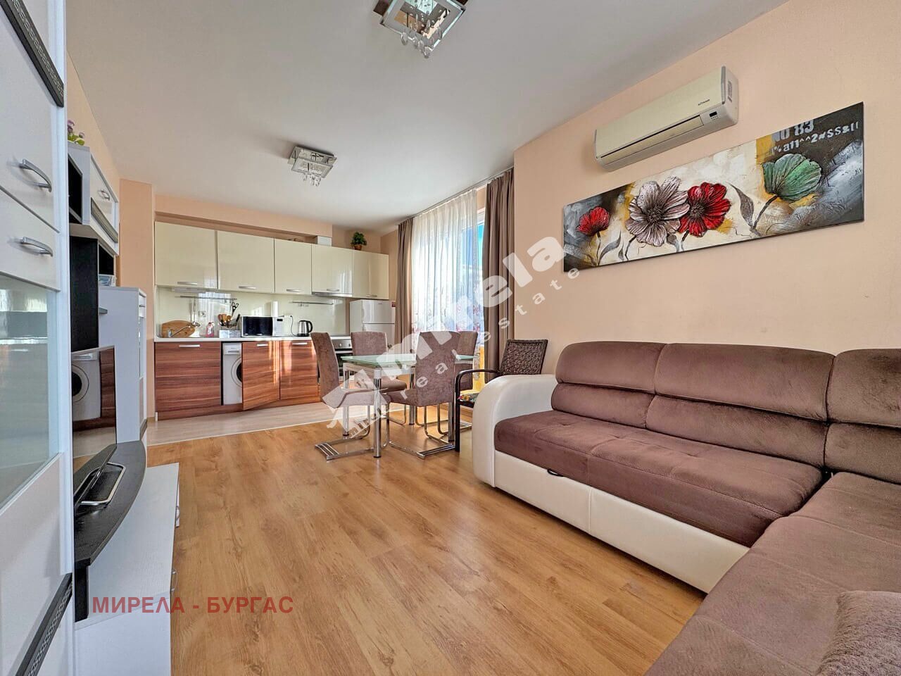 Имотът има жилищен статут; Има надземно паркомясто; Сградата има асансьор; Продава се с обзавеждане, което подлежи на уточнение; Има физическа охрана; ЕТАП НА СТРОИТЕЛСТВО: разрешение за ползване (Акт 16); ОТОПЛЕНИЕ: климатик; Има 1 балкон/тераса; С довършителни дейности; Има такса поддръжка; Непреходен; Целогодишно ползване; ВИД СТРОИТЕЛСТВО: тухла; ГОДИНА НА СТРОИТЕЛСТВО: 2010 г.; ИЗЛОЖЕНИЕ: гледка към басейна; СПАЛНИ: 2; БАНИ: 1; ДОГРАМА: Алуминиева