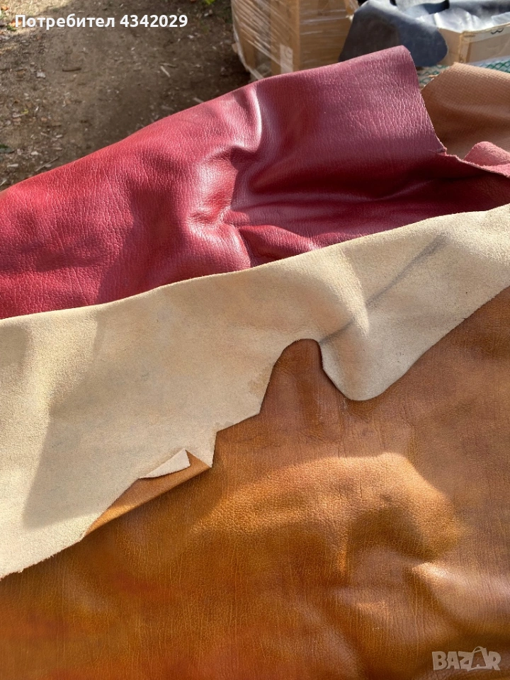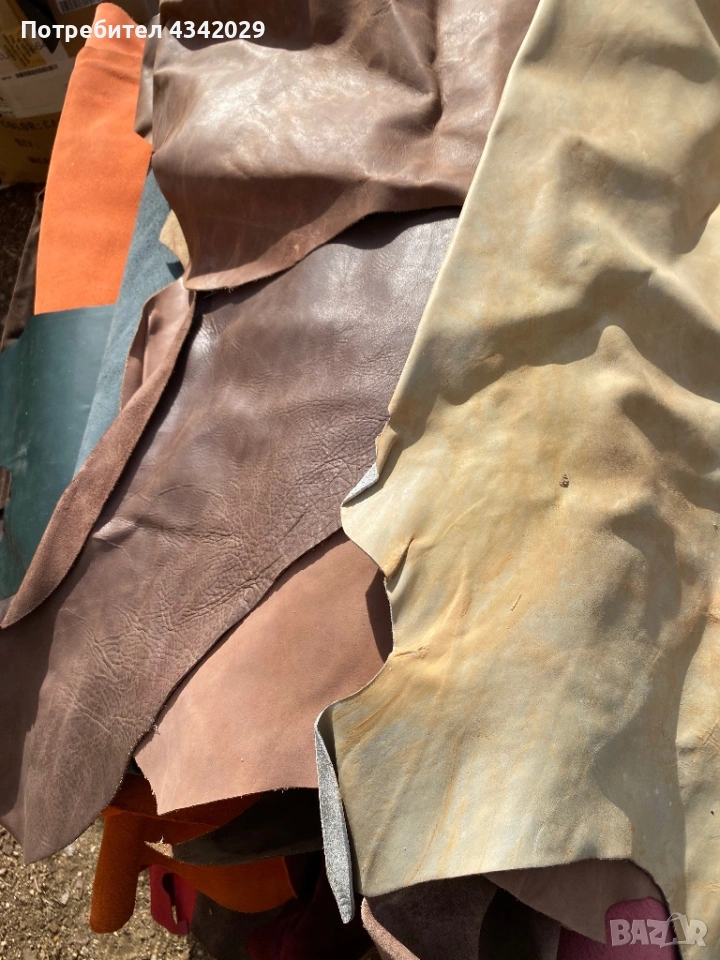 Налични шест кашона естествена кож. Различни цветове и големини. Кожата остана след затваряне на цех за обувки. Може да се достави и в София