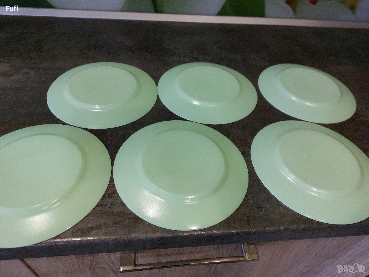 11 евро, за 6 броя нови чинии, плитки големи, 24см диаметър, светло зелени, марка Luminarc