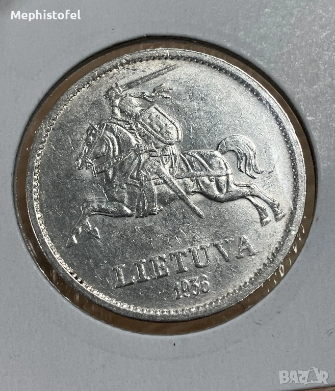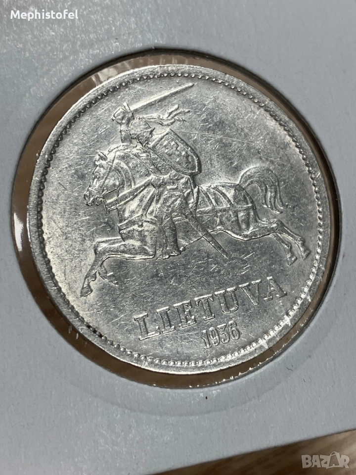 10 литаса 1936 г, Литва - сребърна монета, рядка