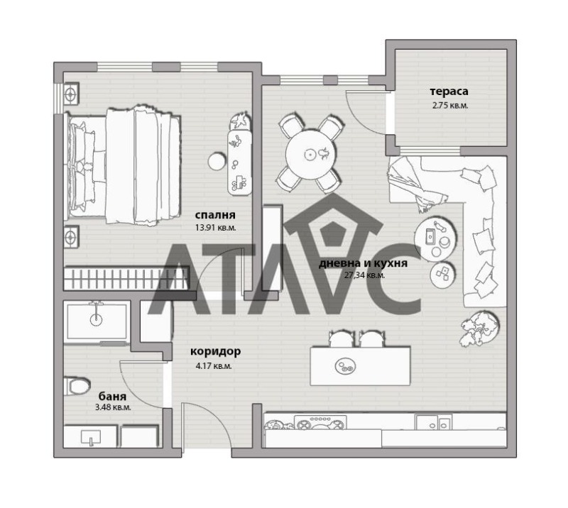 Апартаментът е с добре обмислено разпределение и включва светъл хол с кухненски бокс и трапезария, спалня, баня с тоалетна, практичен килер и тераса, подходяща за релакс. Жилището е проектирано с акцент върху комфорта и качеството на живот. За удобство на бъдещите собственици се предлага възможност за закупуване на паркомясто в комплекса.