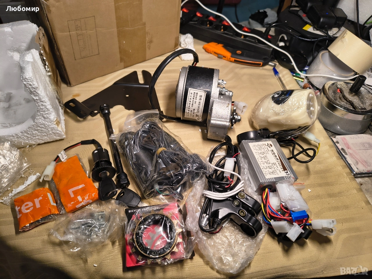 По посока на часовниковата стрелка или обратно на часовниковата стрелка чрез обръщане на захранващите кабели на двигателя.Детайли за опаковката - комплектът на двигателя включва 1 бр. x my1016z2 dc 36v 250w мотор; 21 бр. x контролер на двигателя; 31 бр. x верига; 41 бр. x свободен ход; 51 бр. x адаптер за свободен ход; 61 бр. x монтажна плоча с болтове; 71 бр. x дръжка на газта и лост на спирачката; 81 бр. x фар; 91 бр. x превключвател и ключ; 101 бр. x ос 18 см
