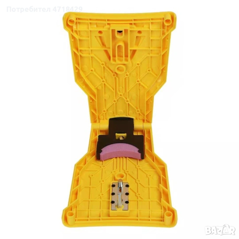 Компактна острилка за бързо заточване на верижен трион / Материал на изработка: първокласна висококачествена ABS пластмаса; 2 отвора за фиксирано заточване – единият фиксиран, а другият се движи напред-назад; Подходящ за вериги 14" / 16" / 18" / 20"; Лек и лесен за носене, инсталиране и използване; Заточва за броени секунди верижни триони; Предпазва ръцете от нараняване и е изключително издръжлив; Цвят на уреда: жълт + черен; Размери на уреда: 22 х 15 х 1,5 см.;