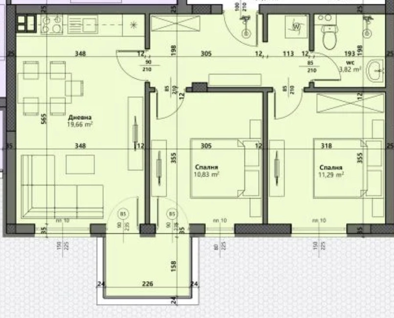 Представяме ви тристаен апартамент на среден етаж в новострояща се сграда. Жилище се състои от дневна с трапезария, две спални, баня с тоалет. тераса, избено помещение. Апартамента е изцяло ориентиран на юг и е среден на етажа.