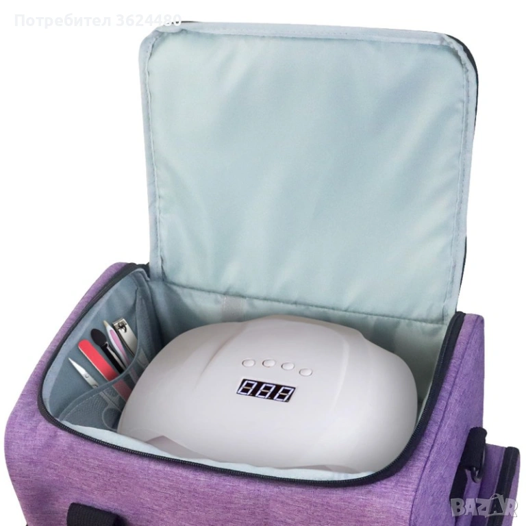 Организирайте своя бизнес в движение с нашия лилав куфар за лакове за нокти с голямо отделение за UV лампа.