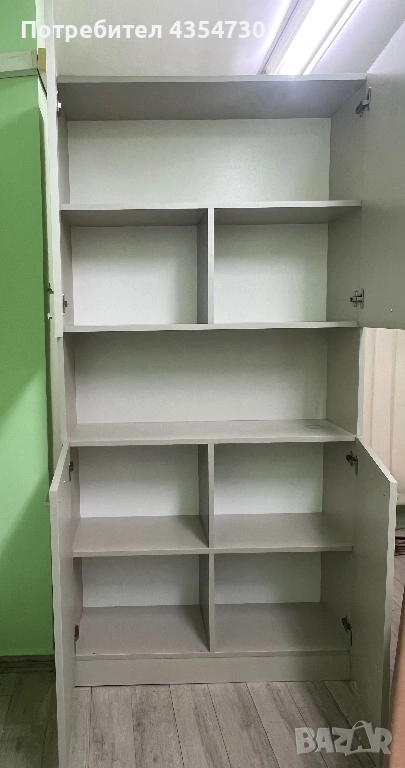 Използван офис шкаф от ПДЧ 100/31 см и Н=202см с две горни и две долни врати. Шкафът е в много добро състояние и може да бъде полезен за съхранение на документи и офис материали.