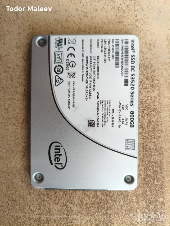 Продавам 2 бр. SSD хард диск Intel SSD DC S3520 800GB SATA3 93%