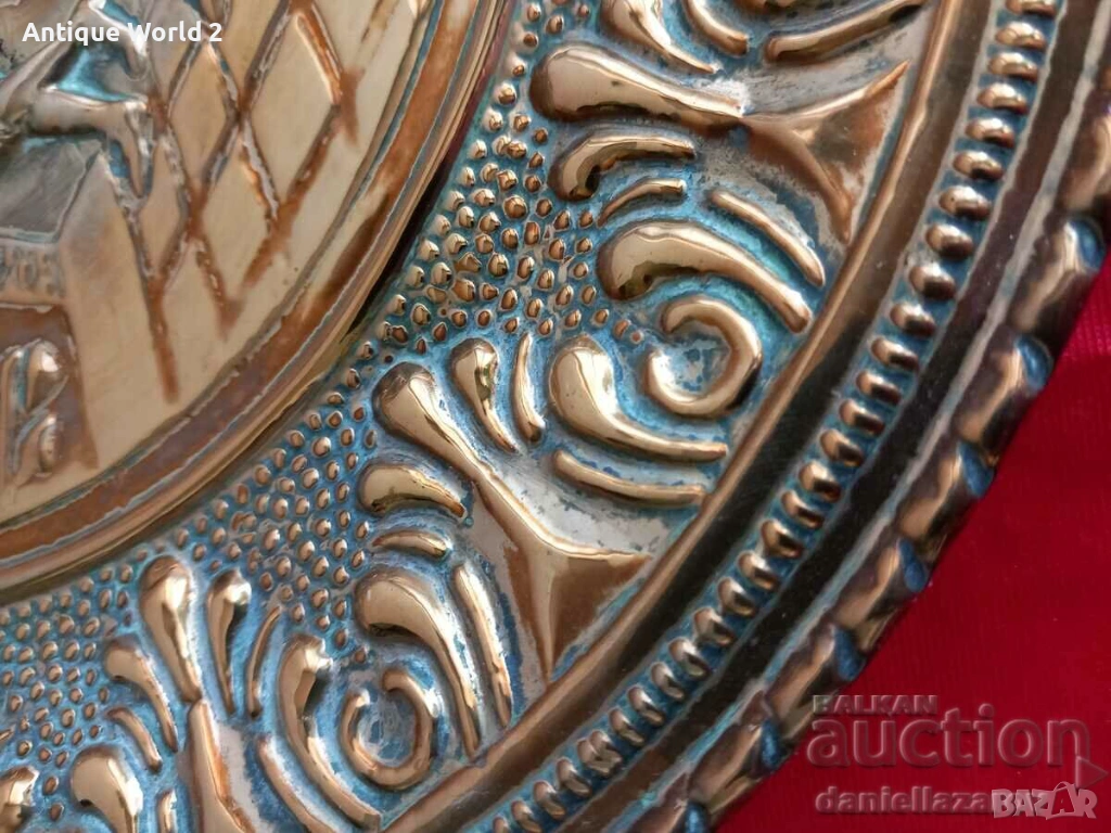 БАРОКОВА Месингова Релефна Чиния ,Пано за Стена с Позлата 2