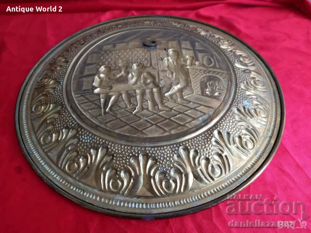 Много Красива Стара Голяма БАРОКОВА Месингова Релефна Чиния ,Пано за Стена с Позлата. Диаметър 30 см!