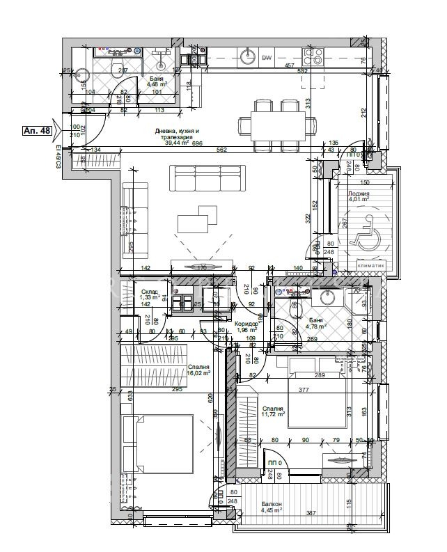 Апартаментът е с обща площ 123.37 м?, ново строителство с отлично разпределение: