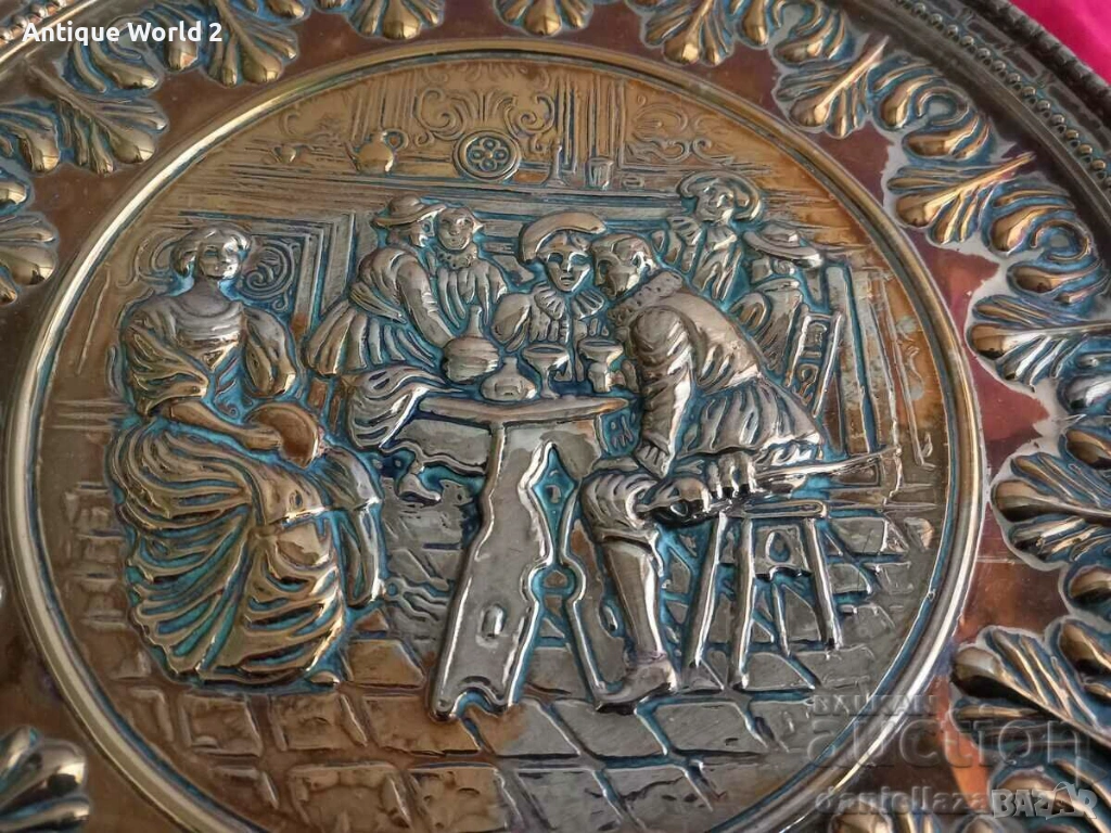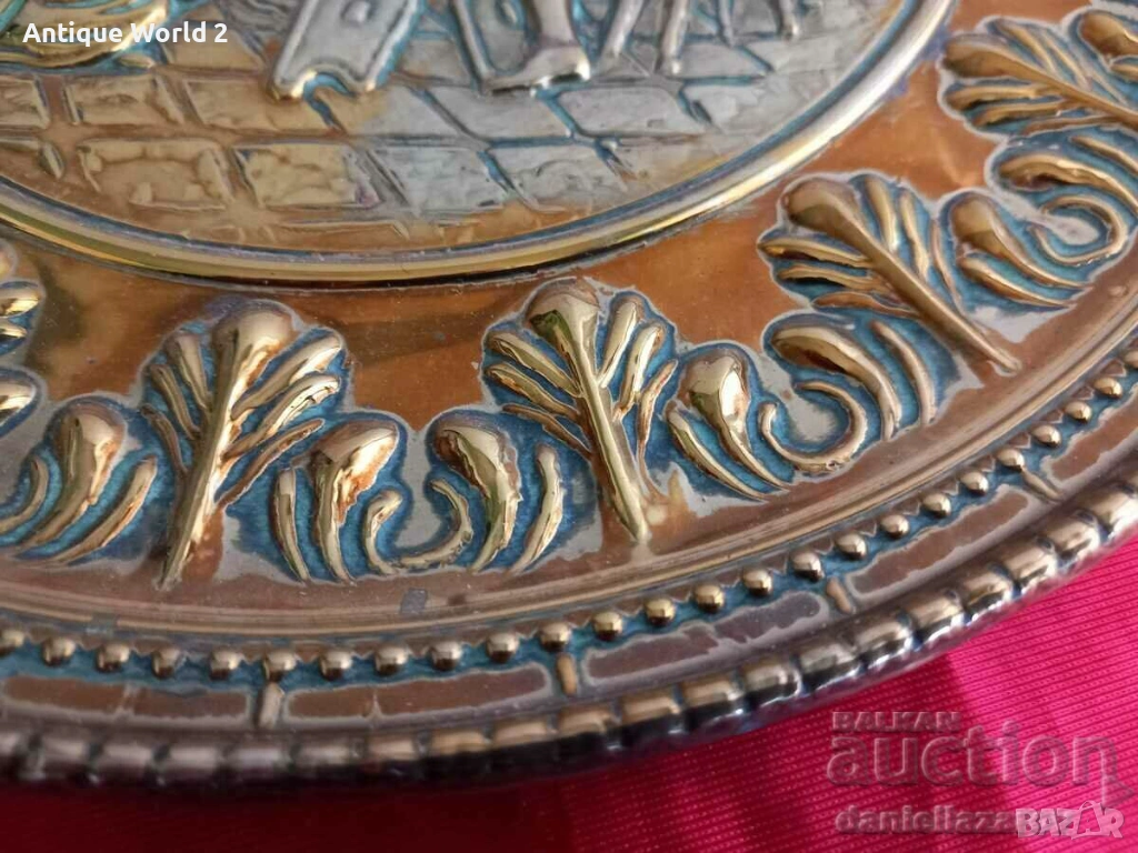 БАРОКОВА Месингова Релефна Чиния ,Пано за Стена с Позлата 3 → Обява 53271354