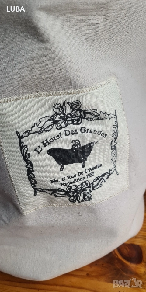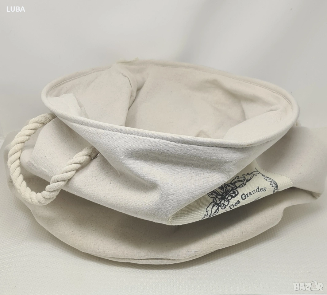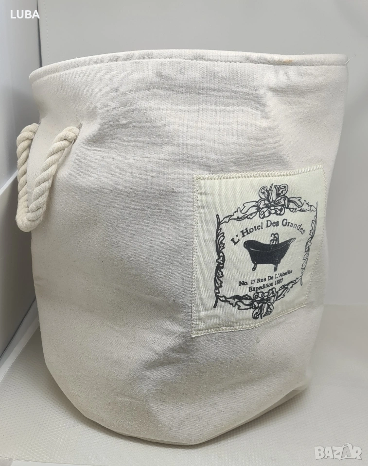 платнен кош/винтидж стил/ за съхранение с въжени дръжки