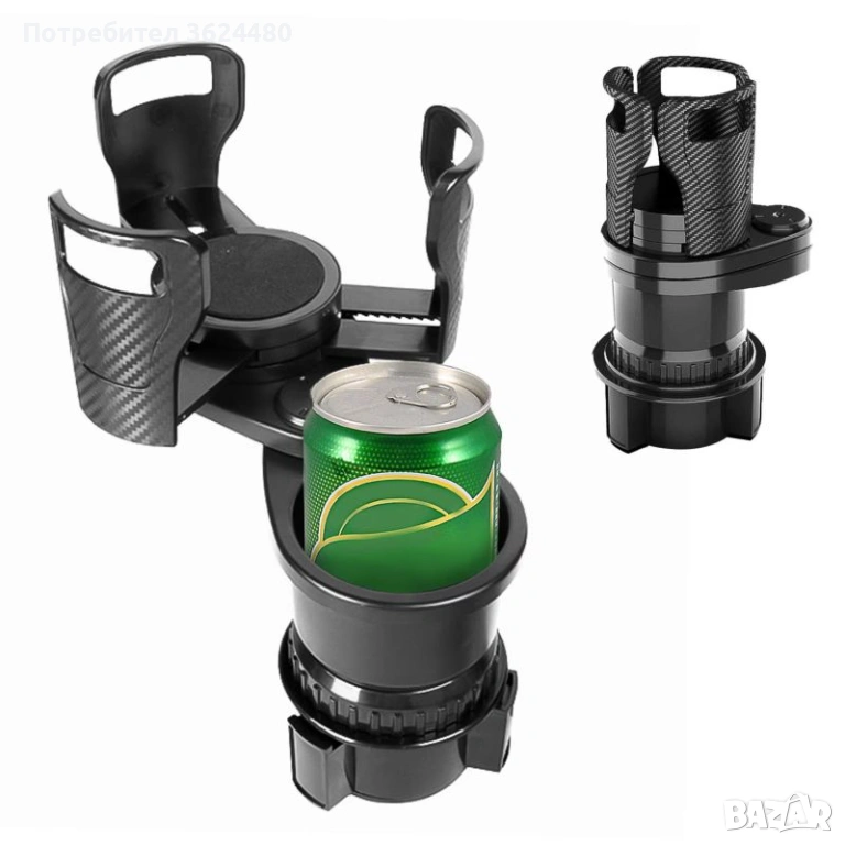 Съдържанието на комплекта включва 1 бр. мултифункционална стойка за чаши за кола.