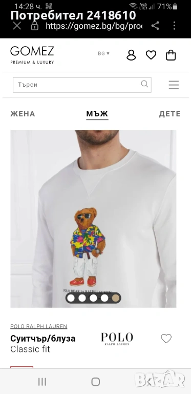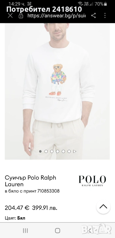 Оригиналeн мъжки бял суичър - блуза , перфектно състояние след употреба !