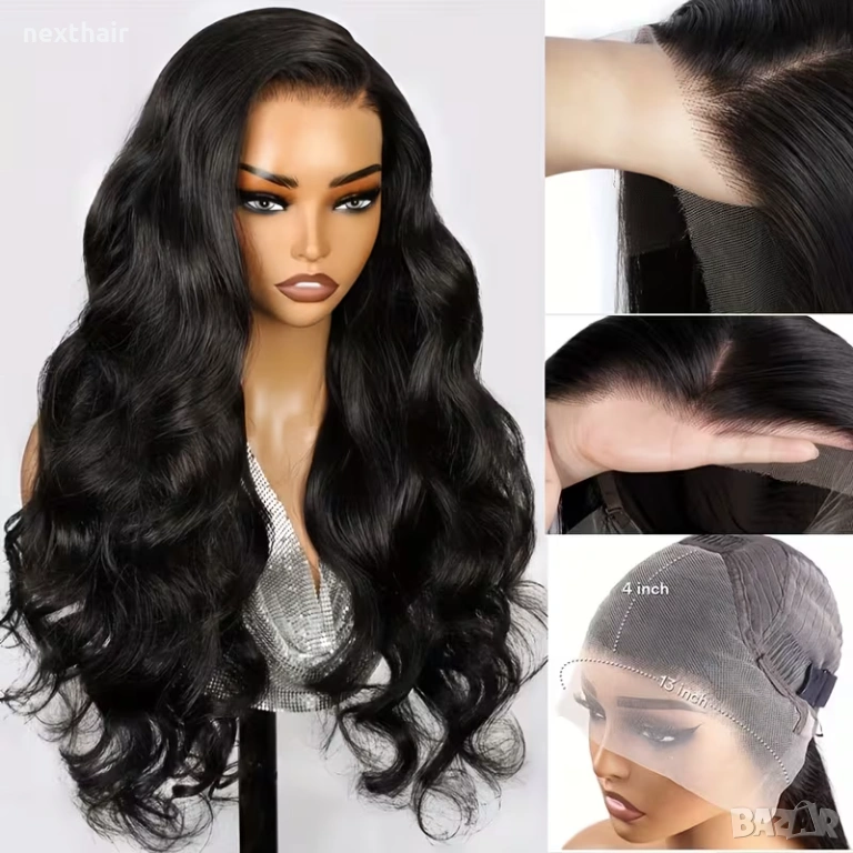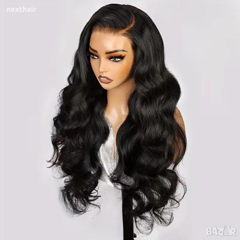 Елегантна черна перука с дълга, мека чуплива коса и дължина 75 см, създадена за впечатляваща визия. Моделът е със синтетични влакна с естествен вид и приятна текстура. Дантелената зона 13x4 отпред осигурява по-реалистична линия на косата и възможност за различни прически и път.
