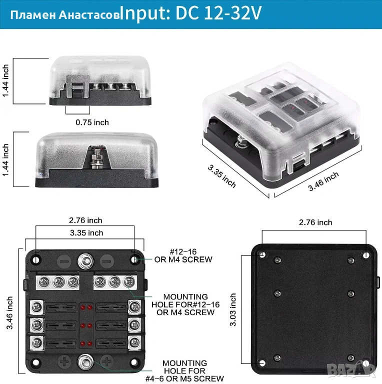 Компактна и надеждна кутия за предпазители с 6 независими вериги, предназначена за безопасно разпределение и защита на електрически системи в автомобили, каравани, лодки, кемпери, ATV, камиони и други 12V/24V инсталации.