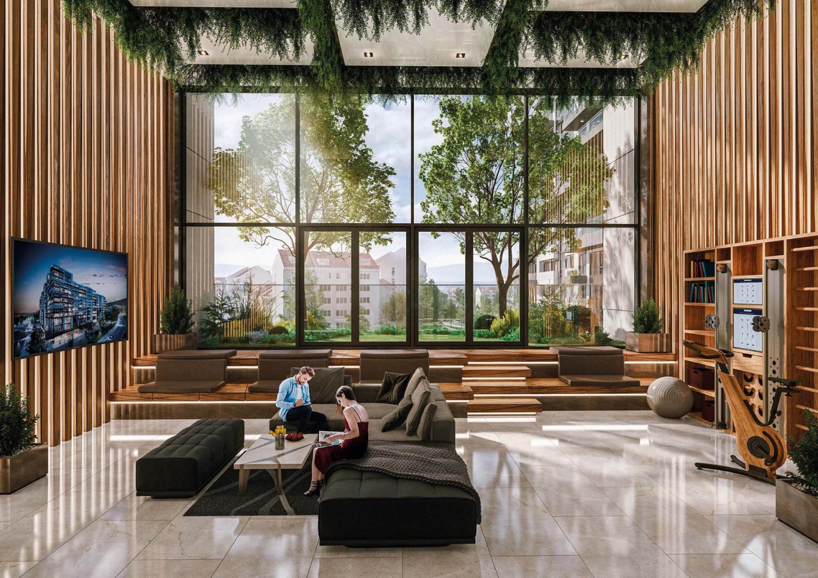 На партерно ниво са предвидени търговски и обслужващи обекти, сред които супермаркет Kaufland, фитнес център на две нива, кафене, магазини и козметичен център всичко необходимо за удобството на живущите.