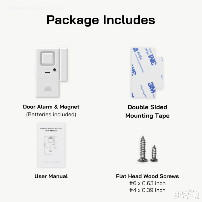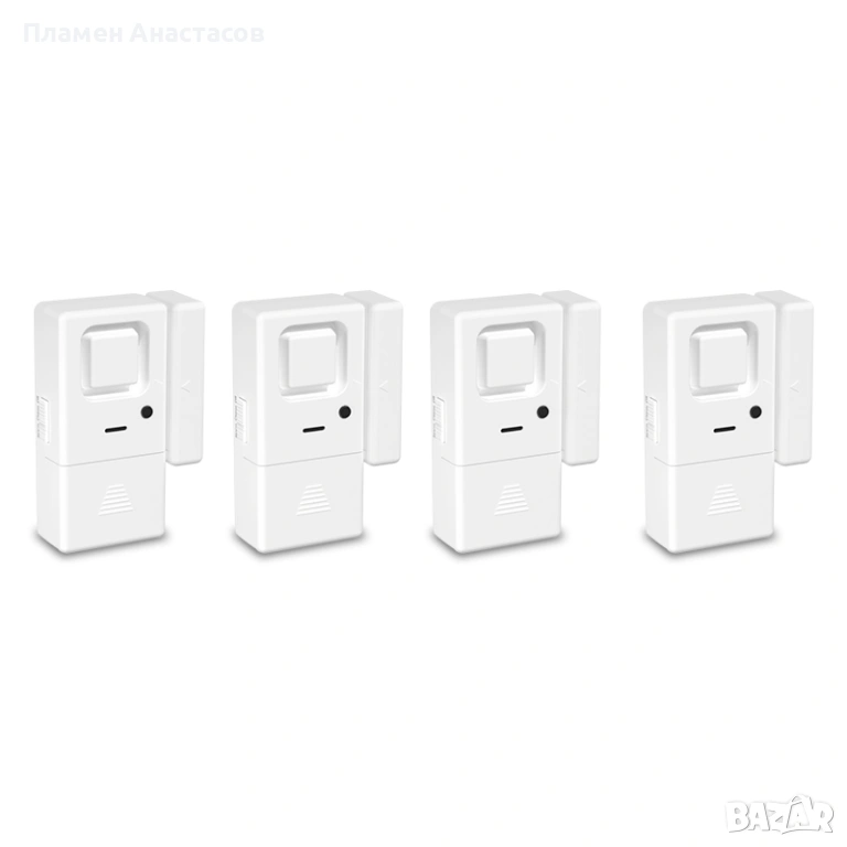 Практичен комплект от 4 броя сензорни аларми за врати и прозорци, предназначени за повишаване на сигурността у дома, офиса или вилата. Устройствата работят в два режима – аларма и звънец (chime), като при отваряне на врата или прозорец се активира звуков сигнал.