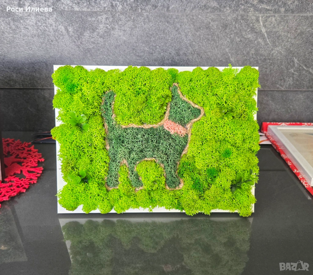 Картина "Коте" декорирана със скандинавски мъх → Обява 53272108