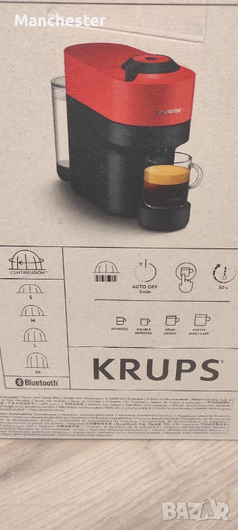 Еспресо машина Nespresso by Krups Vertuo Pop XN920510, 1500W, Технология за центрофужна екстракция, 4 рецепти за кафе, 0,56 л, Червен.