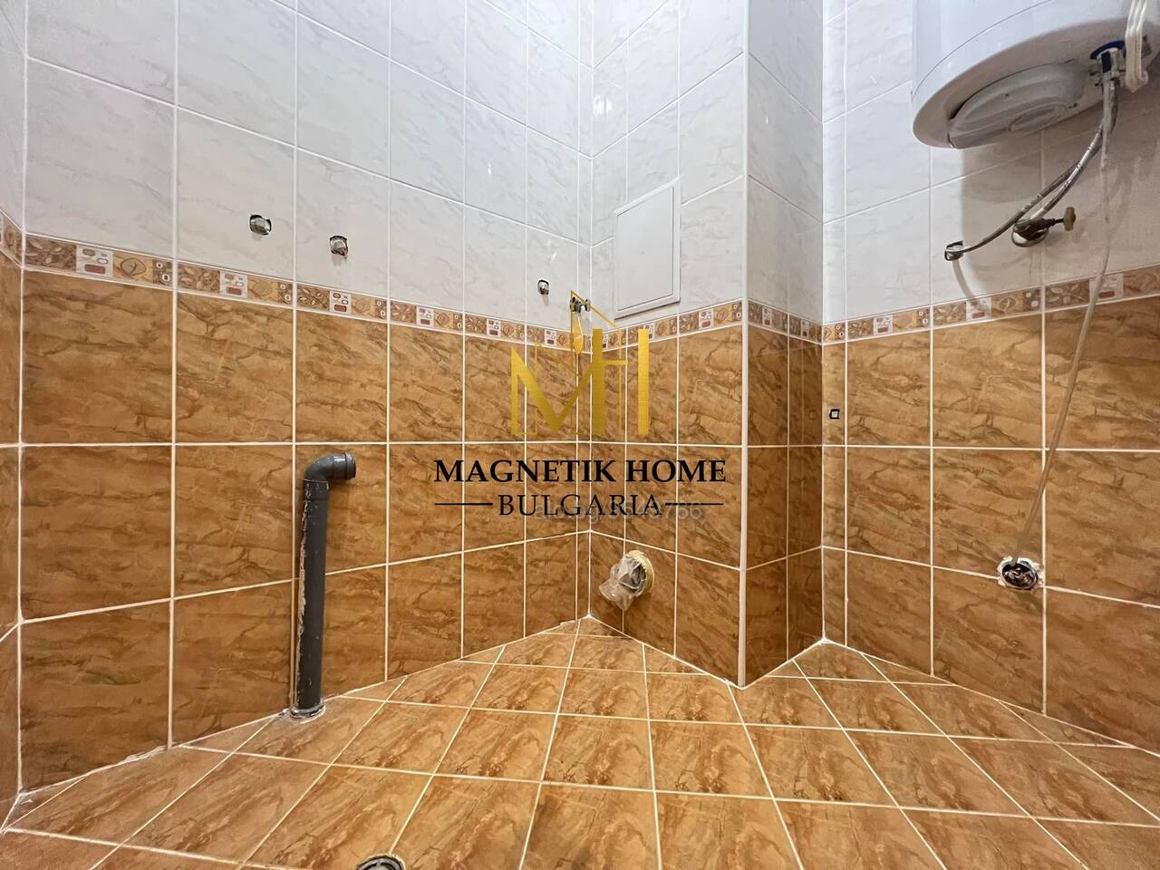 Разпределението на имота се разгръща както следва: дълго входно антре, баня + тоалетна, морко помещение, просторен хол, спално помещение, отделно кухненско помещение и открита тераса.