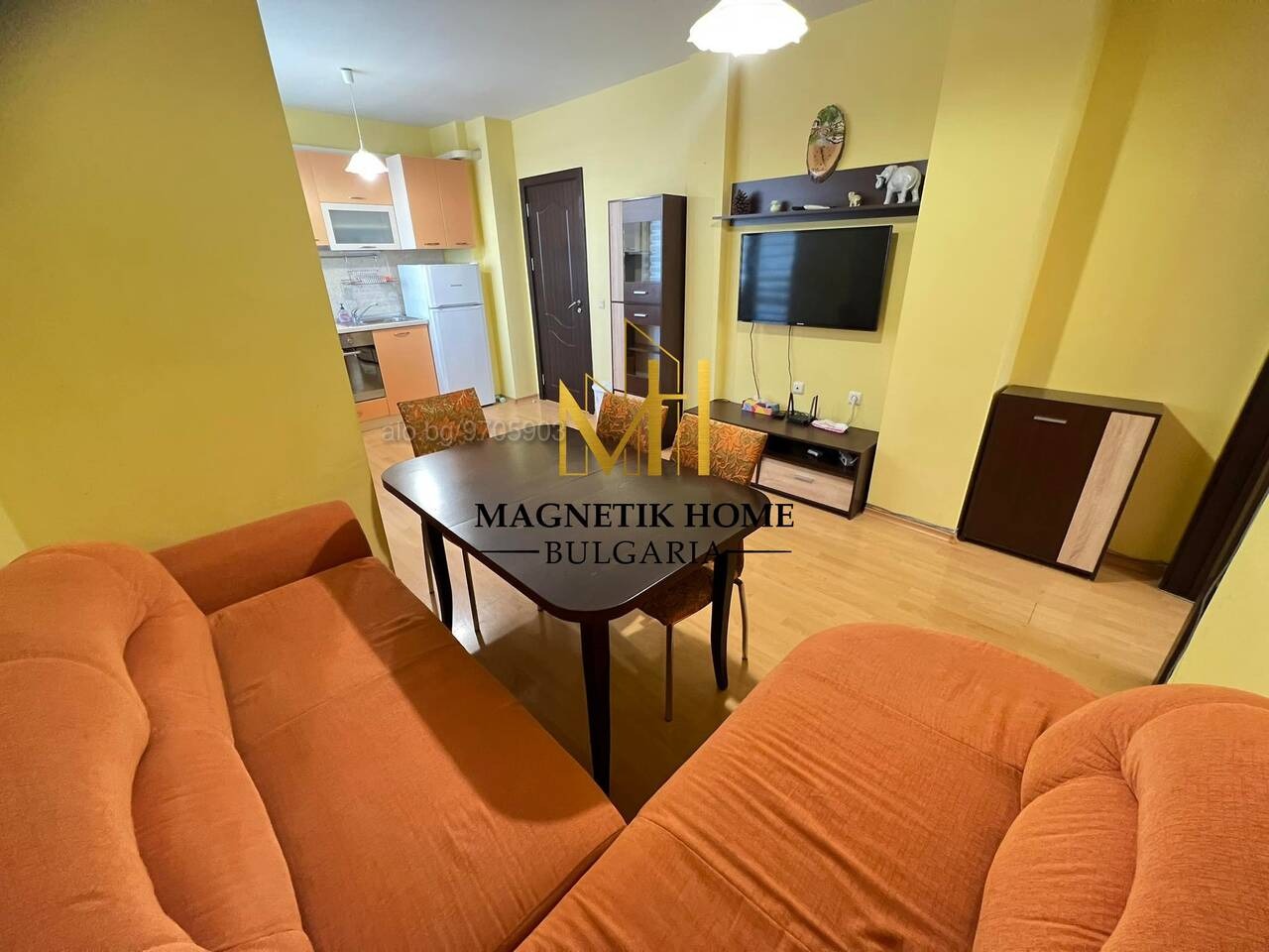 Апартаметът е оборудван изцяло до най - малкият детайл като в допълнение се предлагат инвенторен климатик Haier , 2 СМАРТ телевизора, качествени електроуреди, цялостна кухненска посуда, спално бельо и т.н.