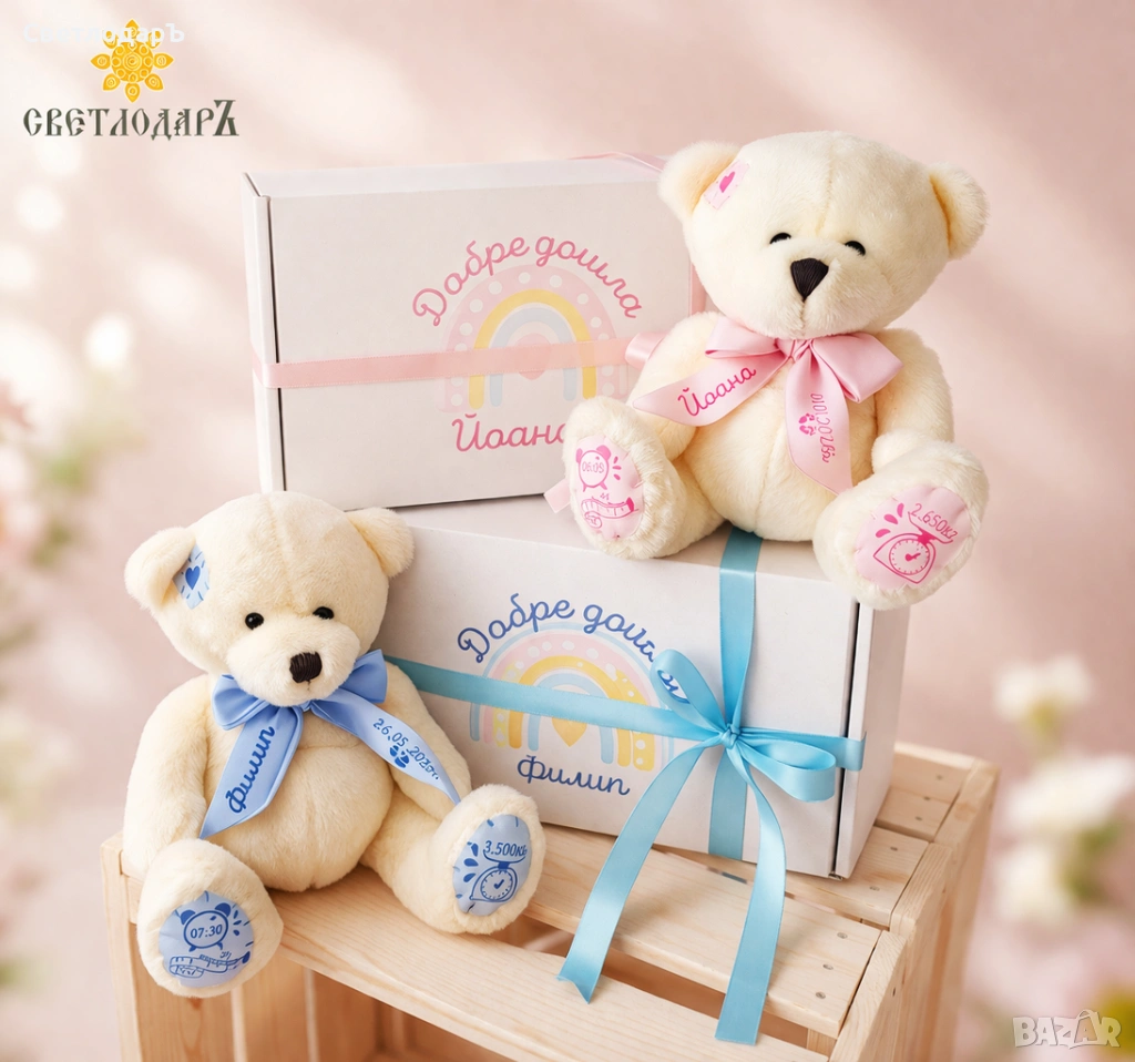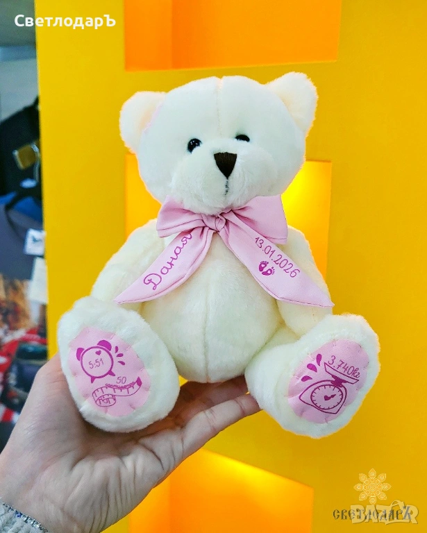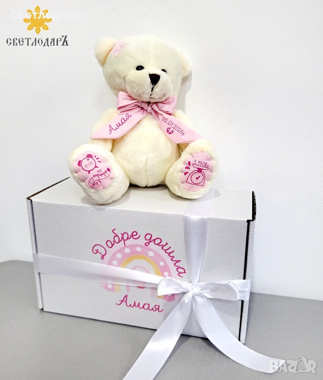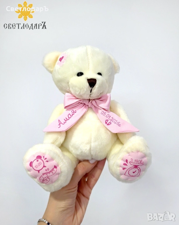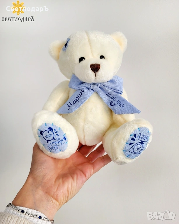 • Персонализирано мече с данни на вашето бебенце. Запознайте се с нашите нови приятели.