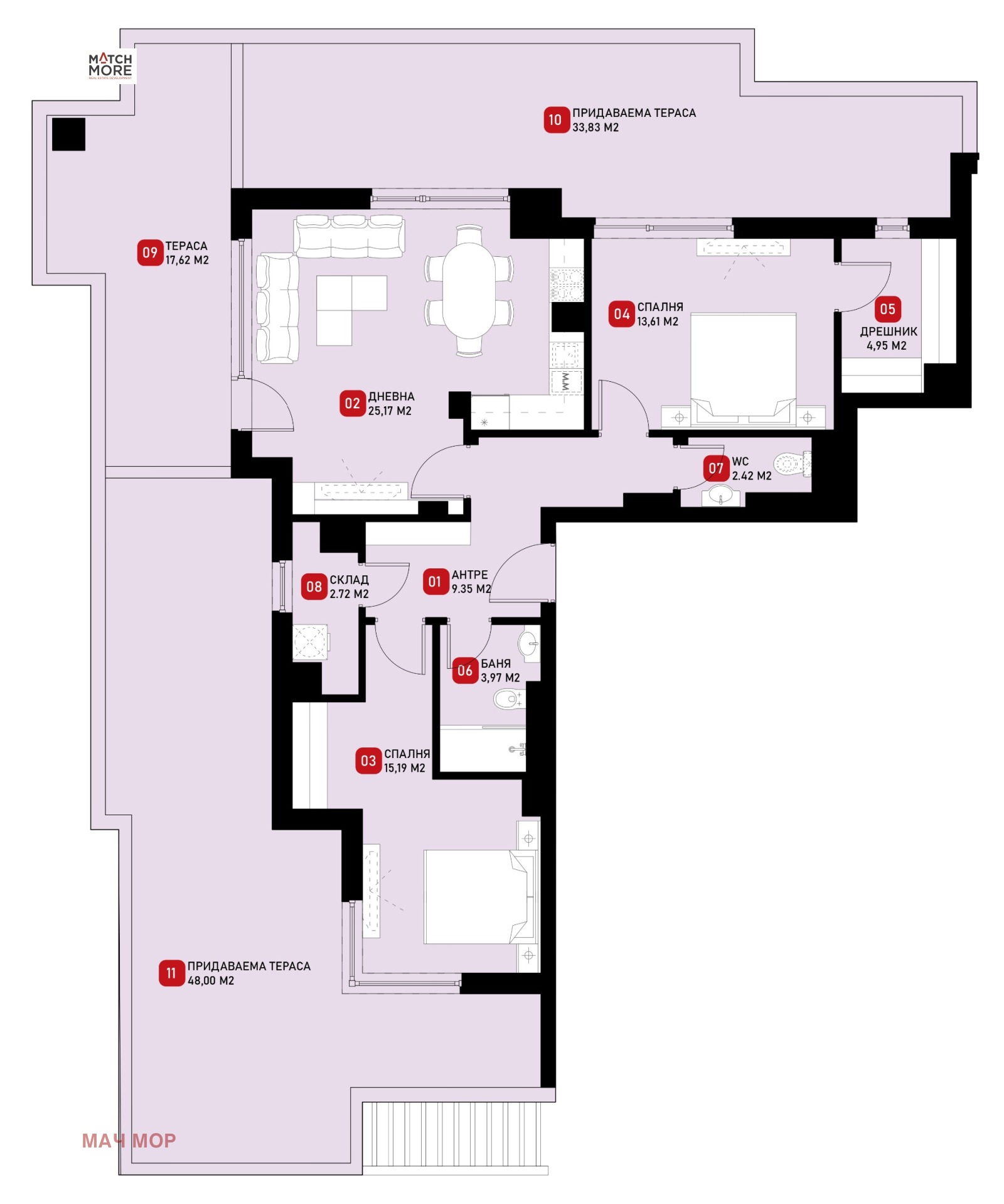 За повече информация за конкретния апартамент, сградата и други проекти, моля, посетете сайта ни: www.matchmore.eu или свържете се с нас на телефон: 0878877767