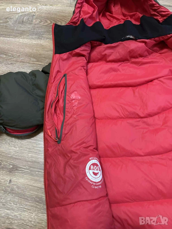 Външен материал: Pertex Shield (полиуретанова мембрана): водоустойчива, ветроустойчива, дишаща и устойчива на износване: материалът Pertex е водоустойчив, следователно е идеален за якета за дейности на открито. Вътрешен материал: Гъши пух: 95/5: 95% пух и 5% пера: най-доброто съотношение на пазара: най-добрата бариера срещу студа! 750 кубически метра: много висококачествен пух/ Кутиеста конструкция: всеки "будин" работи в собствена среда и осигурява максимална локализирана топлина: предимството на тази конструкция е локализирано подаване на топлина без загуби.