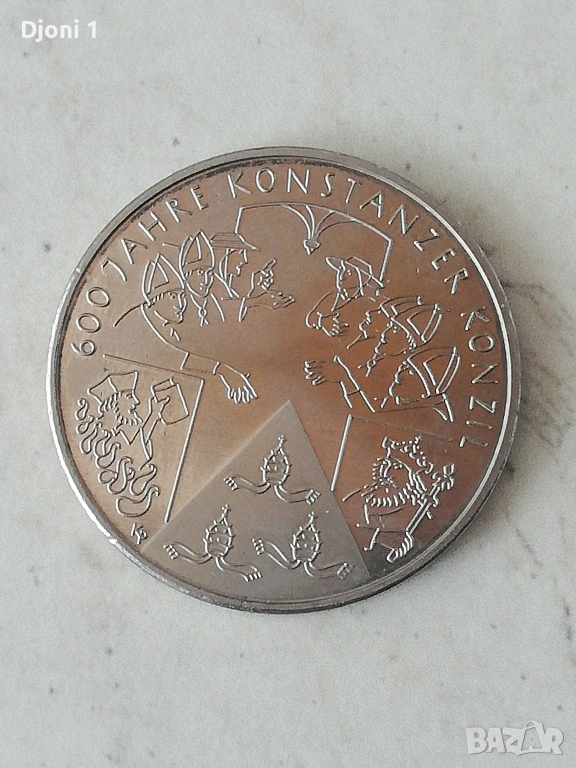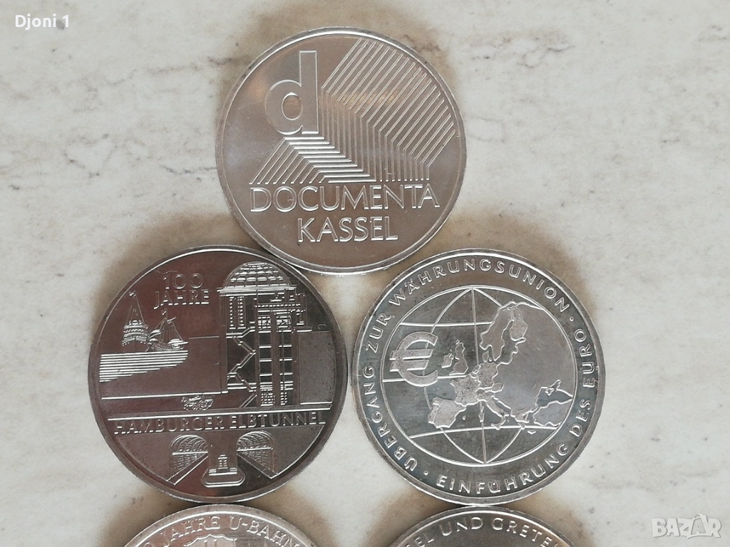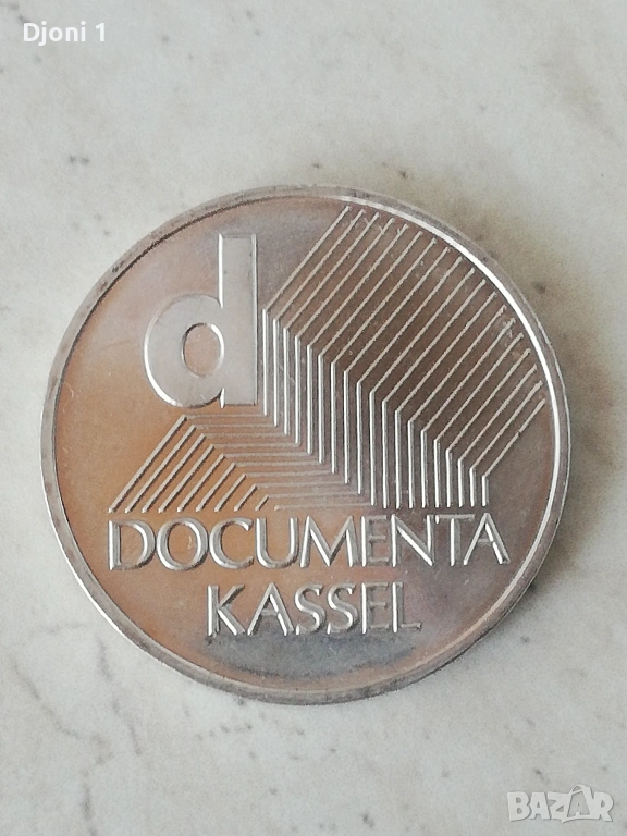 Тази монета е германска възпоменателна емисия от 10 евро, посветена на художествената изложба „Documenta 11“ в Касел.