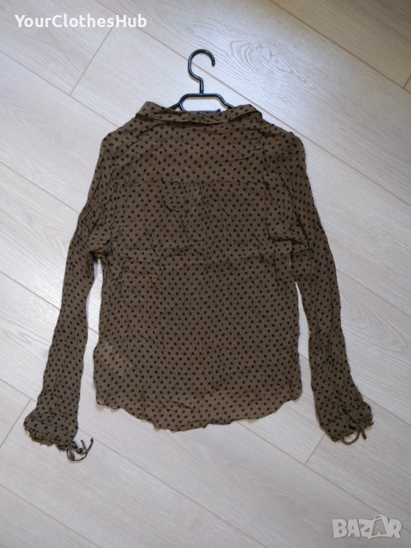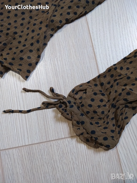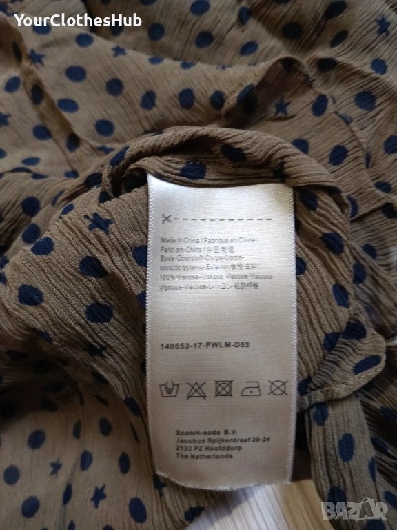 Дамска риза Scotch & Soda Maison Scotch в размер L. Връзки отпред при деколтето и при двата ръкава. Орнаменти на точици и звездички.100% вискоза