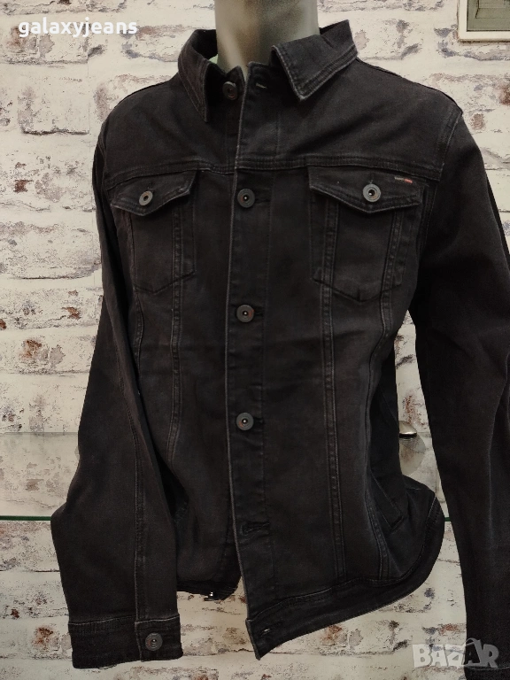 Черно дънково яке, Леко избелено, С яка и копчета, 4 джоба, 78% памук, 20% полиестер, 2% еластан