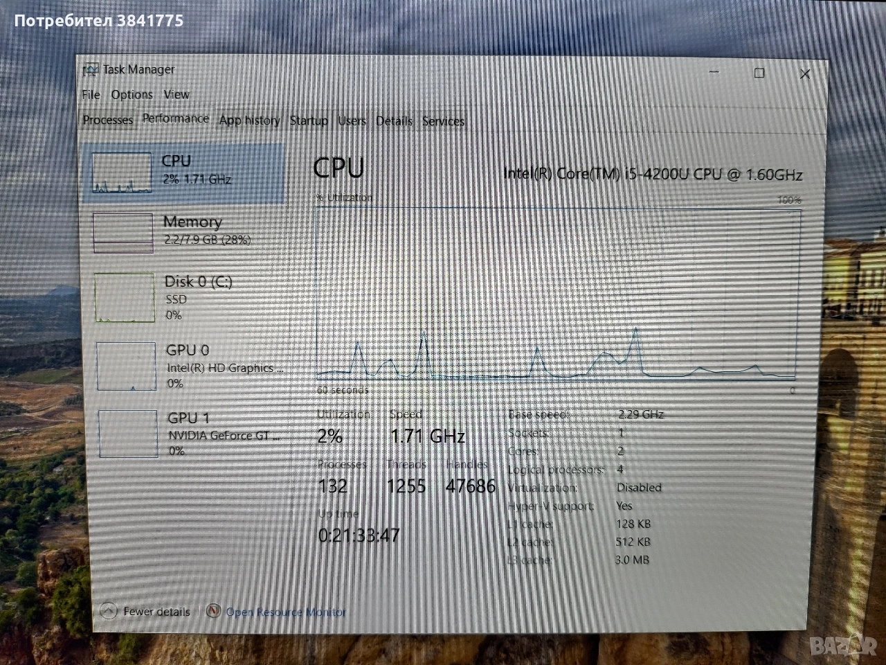 Лаптопа е в добро състояние, с нормални следи от употреба и няколко забележки.