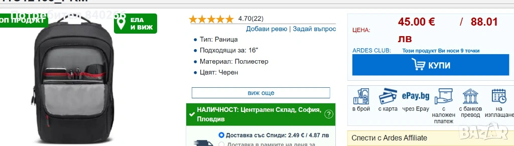 • Отделение за лаптоп