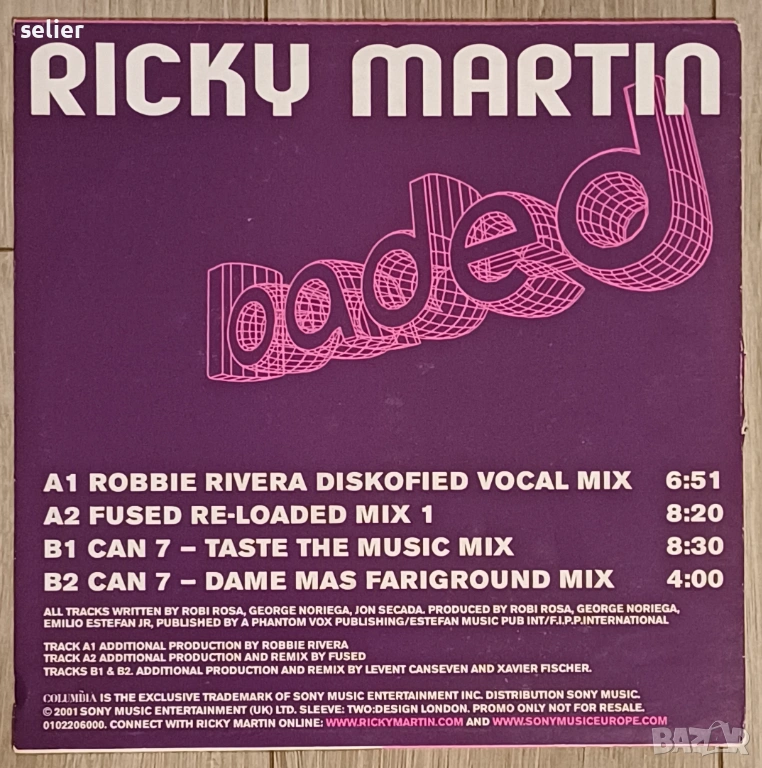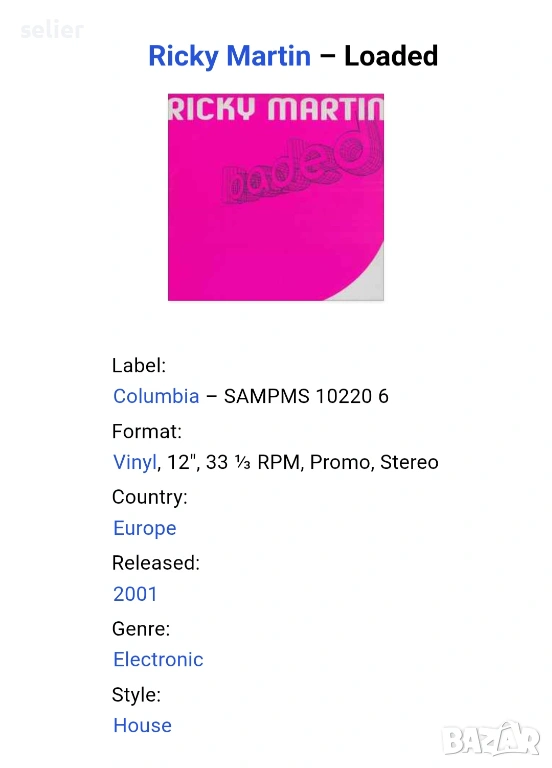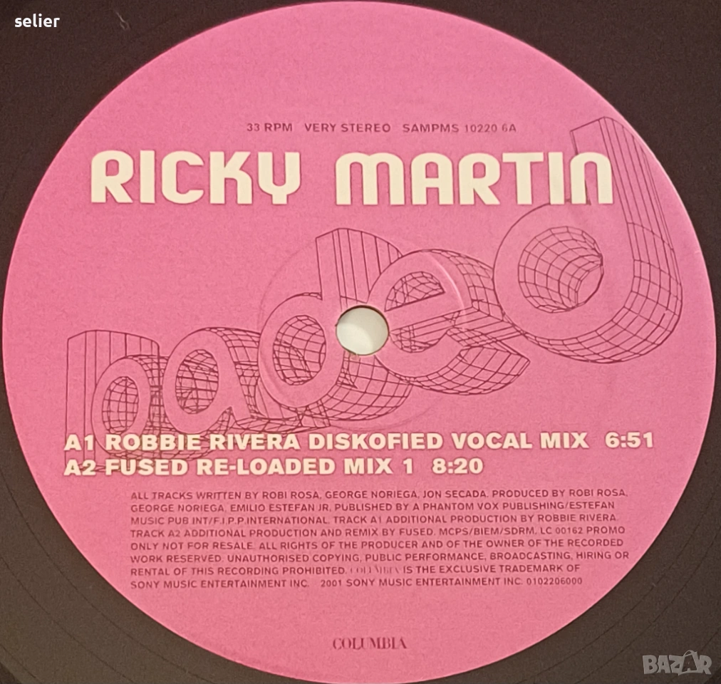 Ricky Martin ‎– Loaded Maxi Single 12 Издание на COLUMBIA 2001 г PROMO издание Състояние на вини → Обява 53273794