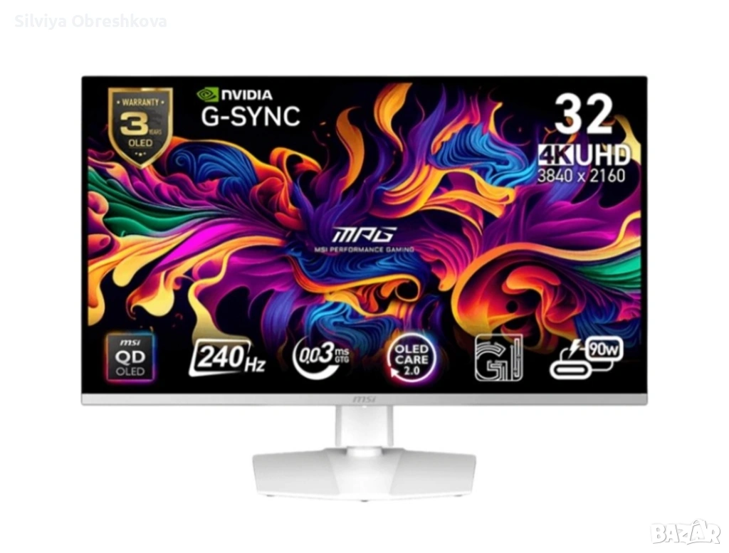 MSI MPG 321URXW е висок клас 31'' OLED гейминг монитор, създаден за играчи, които изискват максимална скорост, цветова точност и изключителна детайлност. С най-новата OLED технология, Ultra HD резолюция и честота на опресняване 240 Hz, този модел доставя плавно движение, дълбоки черни тонове и невероятен контраст – идеален както за бързи eSports заглавия, така и за AAA игри.