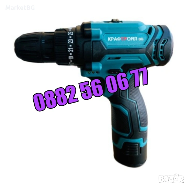 Акумулаторен Двускоростен Винтоверт с 2 батерии и накрайници 24V 6Ah KraftRoyal