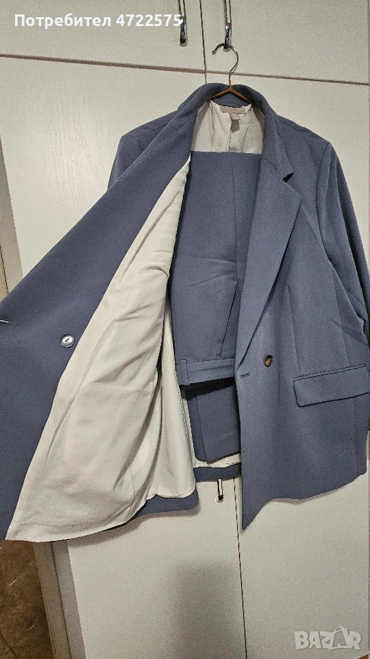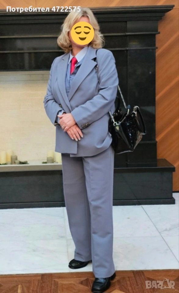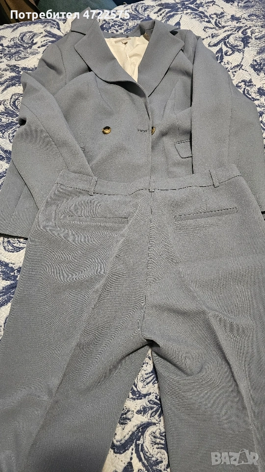 дамски костюм – сако и панталон Продавам стилен и изискан дамски брючен костюм от две части – сако и панталон, с класическа кройка и много елегантна визия. Цвят: сиво-син (спокоен, неутрален нюанс) – перфектен за офис, работа, делови срещи и официални поводи. Сако: – Свободна, елегантна кройка – Размер M – Подходящо за ръст 170 см / 96A Панталон: – Класически модел със стрелка – Размер 44 – Подходящ за ръст 175 см / 84A Костюмът е изключително елегантен, сдържан и стилен, подходящ за жени, които ценят класиката и професионалния външен вид. Лесно се комбинира с риза, топ или елегантни обувки. Идеален избор за офис, бизнес срещи, интервюта и официални събития. #дамскикостюм #елегантенстил #офискостюм #класическикостюм #бизнесвизия #сакапанталон #стилнажена #OLXbg #Bazarbg