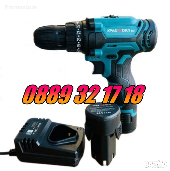 Акумулаторен Двускоростен Винтоверт с 2 батерии и накрайници 24V 6Ah KraftRoyal