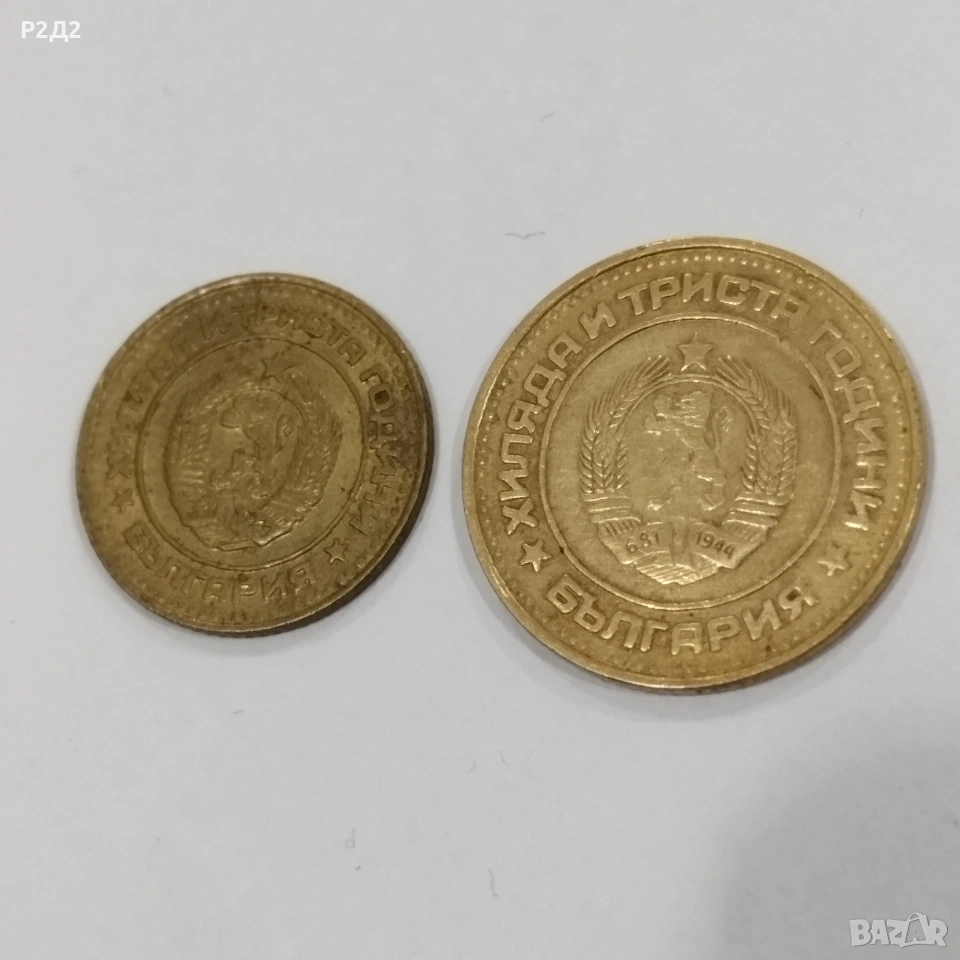 Стари монети - 1 и 2 стотинки от 1981 г. На герба пише ,, Хиляда и триста години България ". Цената е обща!