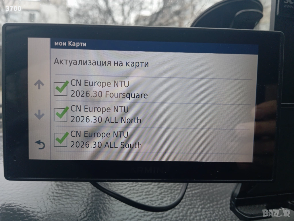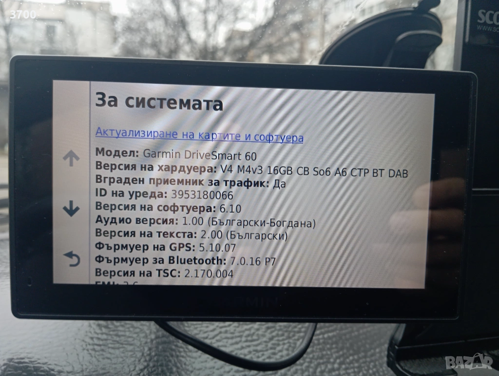 6.1" диагонал (15.4 cm) В отлично състояние с най-актуалните карти за момента на България и Европа. Неограничено във времето обновяване на картите през сайта на Garmin.
