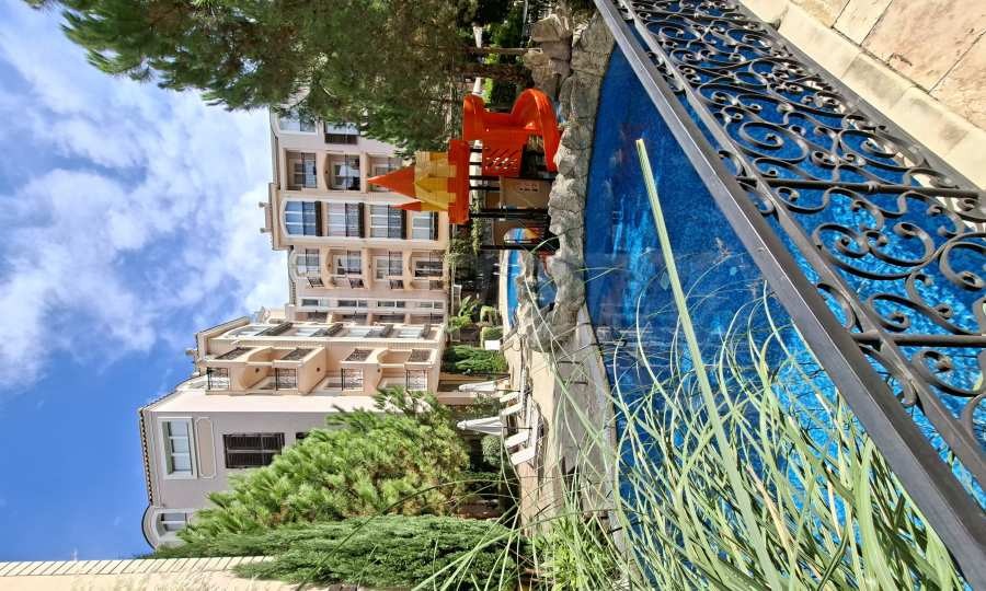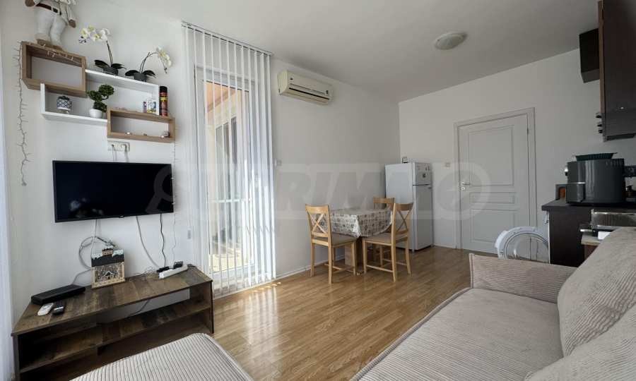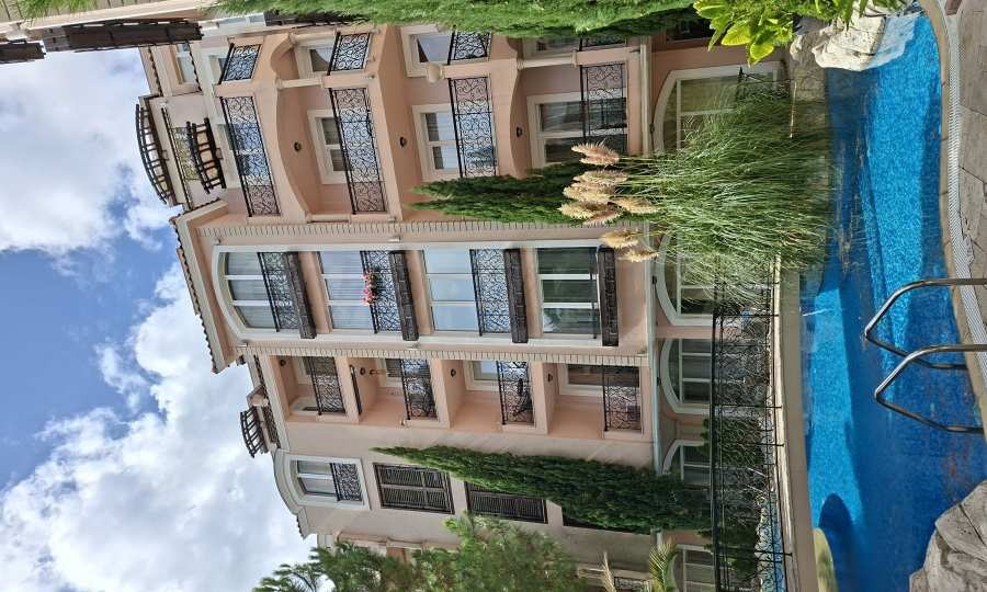 Представяме двустаен апартамент за продажба, в изискан комплекс в средиземноморски стил, на 400 метра от плажа на Слънчев бряг. Локацията е близо до Bedroom и Cacao Beach.