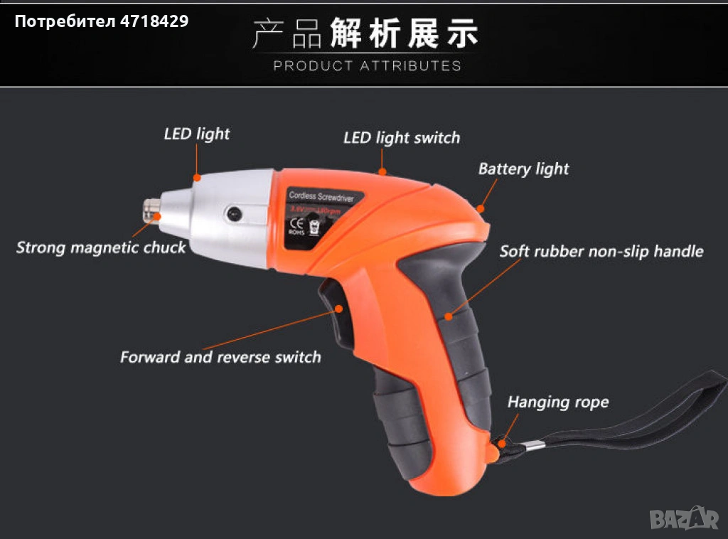 Компактен акумулаторен винтоверт 4.8V с 45 части → Обява 53274901