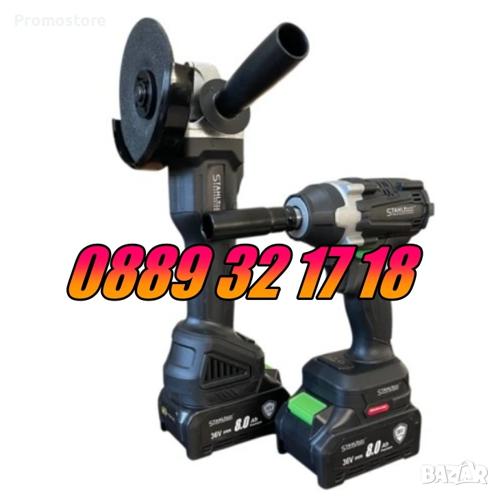 Комплект от акумулаторен ударен Гайковерт и Ъглошлайф 36V 8,0Ah с подарък дълбока вложка StahlMayer Black XR