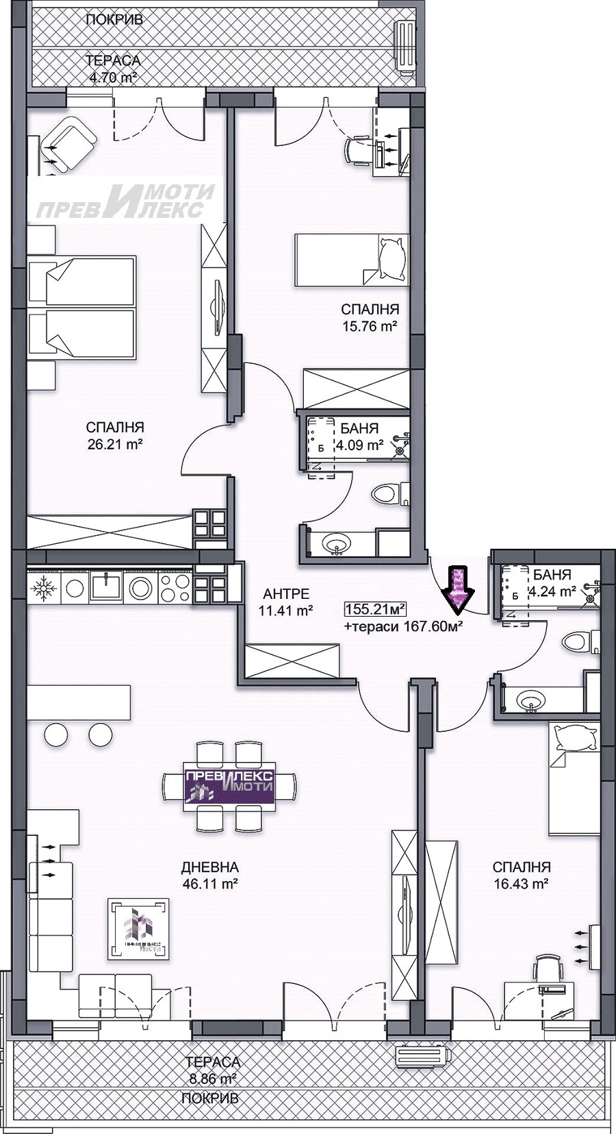Оферта 1-5959, С акт 14. Без комисионно възнаграждение от купувача. Цени на инвеститор. Избор на етаж, изложение и големина на 2-стайни,3-стайни и многостайни апартаменти. Предлагаме Ви апартамент в ново-строяща се сграда, част от композиция от 4 сгради. На тиха улица с бърз достъп до главни пътни артерии. На близко разстояние от търговска зона в квартала, училище и детска градина. Разпределение на помещенията: просторна дневна с кухненски бокс с излаз на тераса, три спални, две бани с тоалетна, втора тераса и входно антре. Изложение: север, юг. Възможност за закупуване на гараж или парко-място. Схеми на разсрочено плащане, съобразени с възможностите на купувача. Доказал се във времето инвеститор с много завършени сгради. Степен на завършване: стени и таван - шпакловка, под - циментова замазка, ВиК до тапа, ел. инсталация до фасунга и ключ, PVC дограма, завършени тераси с гранитогрес и парапет. Луксозно завършени общи части - вътрешни и външни парапети, блиндирана входна, контролиран достъп и електрически безшумен асансьор. Препоръчваме това жилище при избора Ви на нов дом или като подходящ инвестиционен инструмент. Гарантираме, че ще получите необходимото внимание и компетентно съдействие. Ние ще Ви предложим професионално отношение и чрез индивидуален подход ще се стремим да бъдем максимално полезни в търсене на най-доброто решение за Вас. Работим с голям кръг от инвеститори, строители и колеги и се стремим да покрием с максимално изчерпателна информация и оферти зададените от Вас критерии. Съдействаме за получаване на ипотечен кредит за имота, който сте избрали, при най-добри условия за купувача. За повече подробности, проект или оглед сме на разположение на посочения телефон.