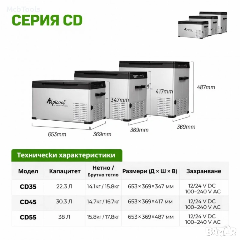 Хладилна кутия за автомобил и къмпинг Alpicool CD50 – 38 литра две отделения, 12V / 24V / 220V