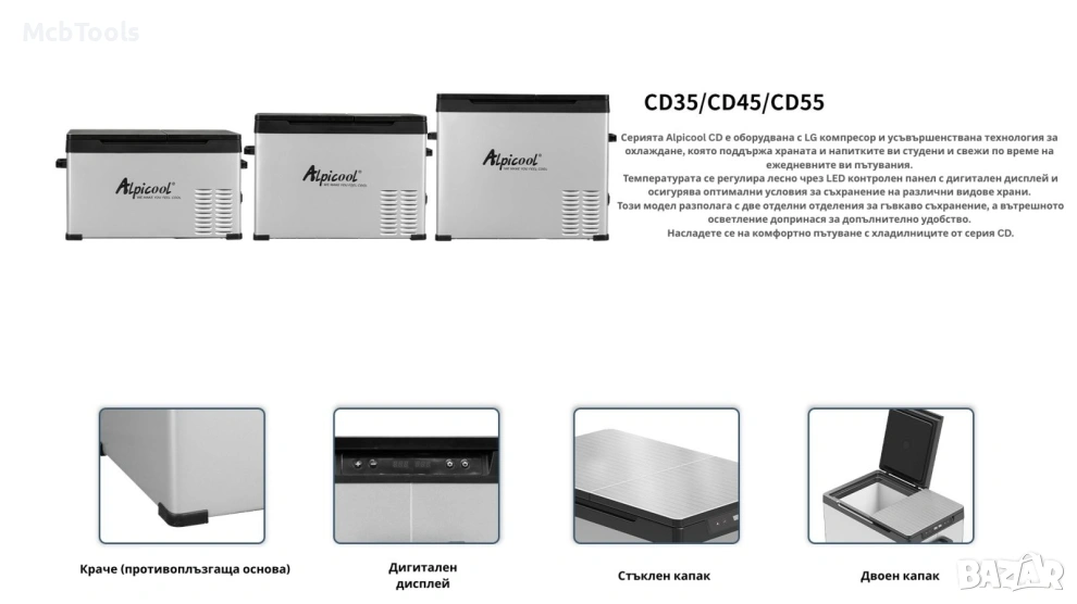 Портативният компресорен хладилник Alpicool CD50 с обем 38 литра е идеално решение за пътувания, къмпинг, каравани, камиони и бусове. Благодарение на компресорната технология осигурява ефективно охлаждане и замразяване в диапазона от –20°C до +20°C.