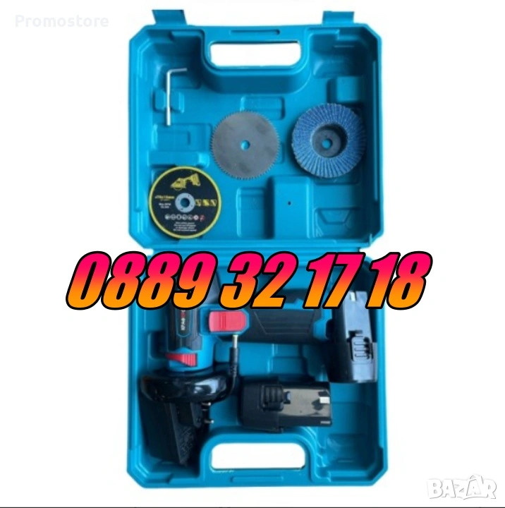 Мини акумулаторен ъглошлайф с 2 батерии 24V 6Ah и 3 диска за рязане