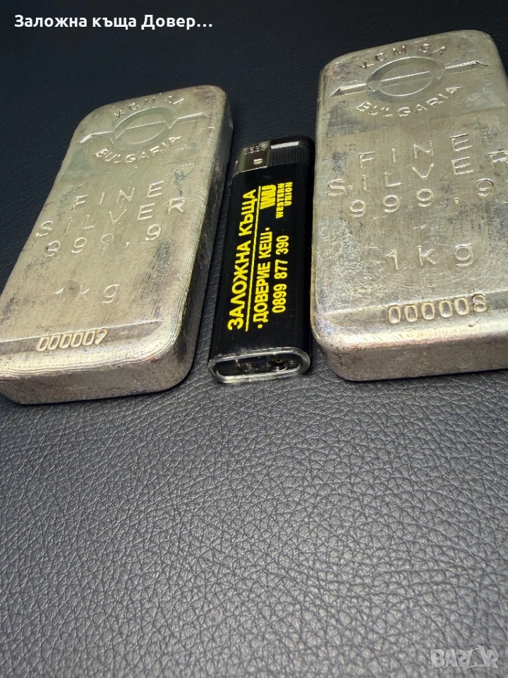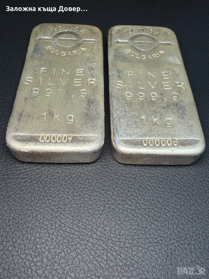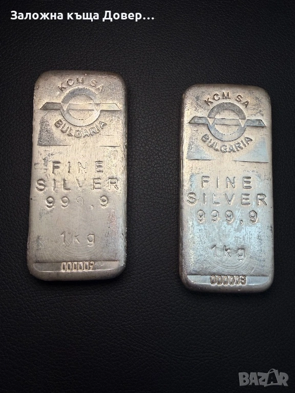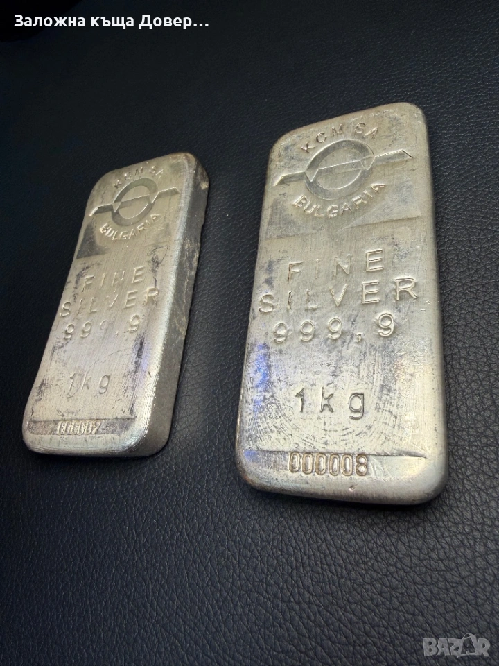 Сребърни кюлчета 1кг КЦМ silver 999 сертификат инвестиционно сребро